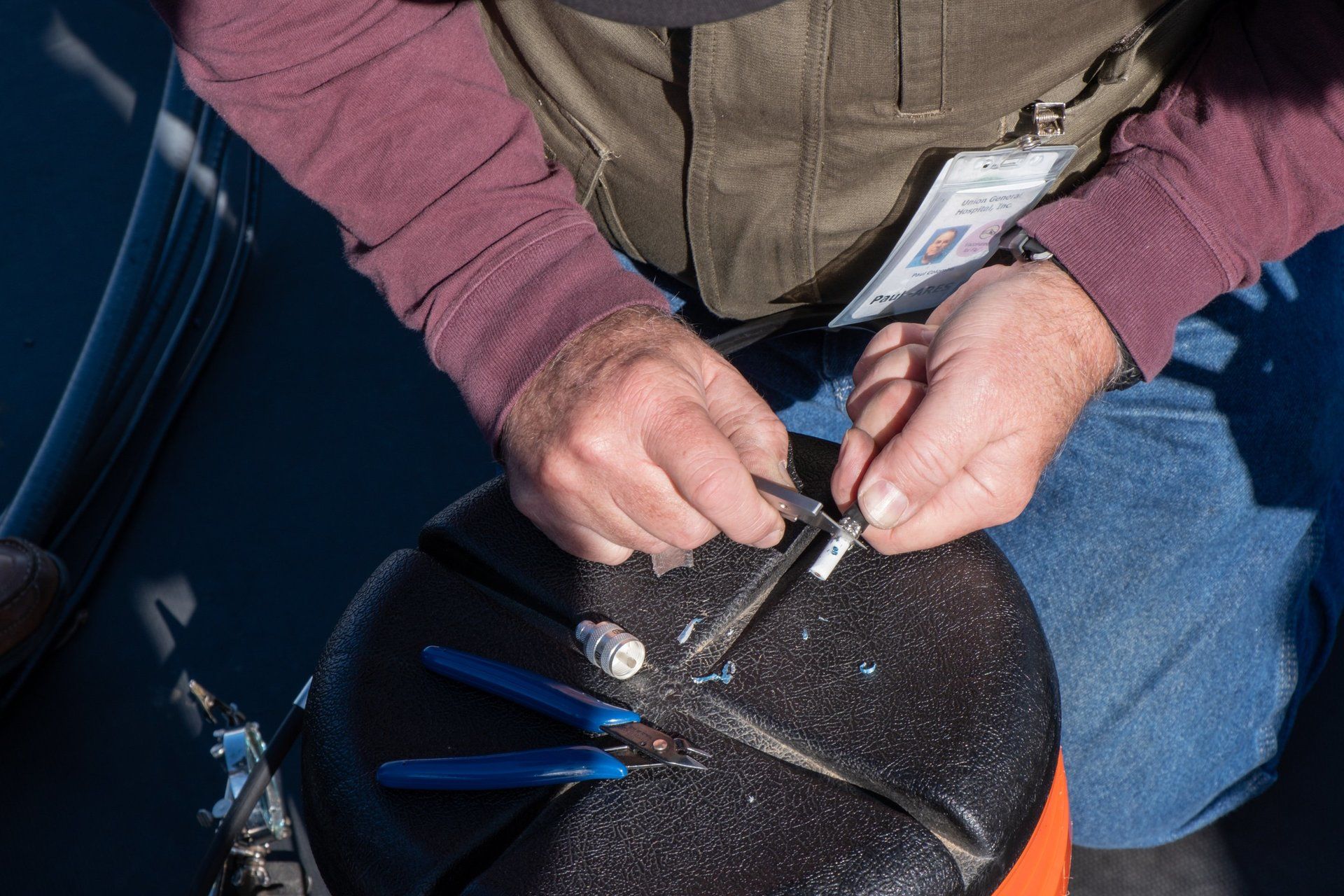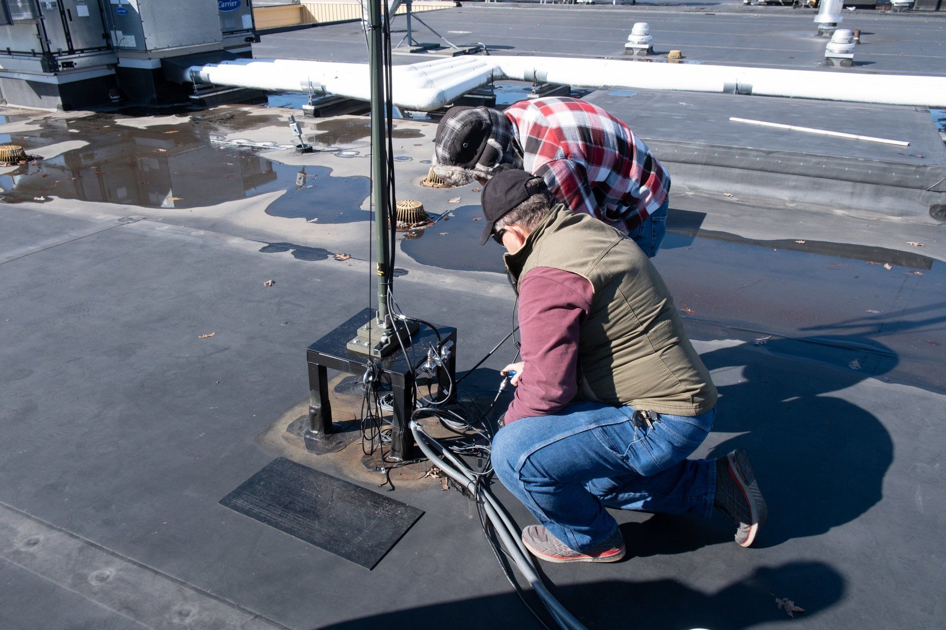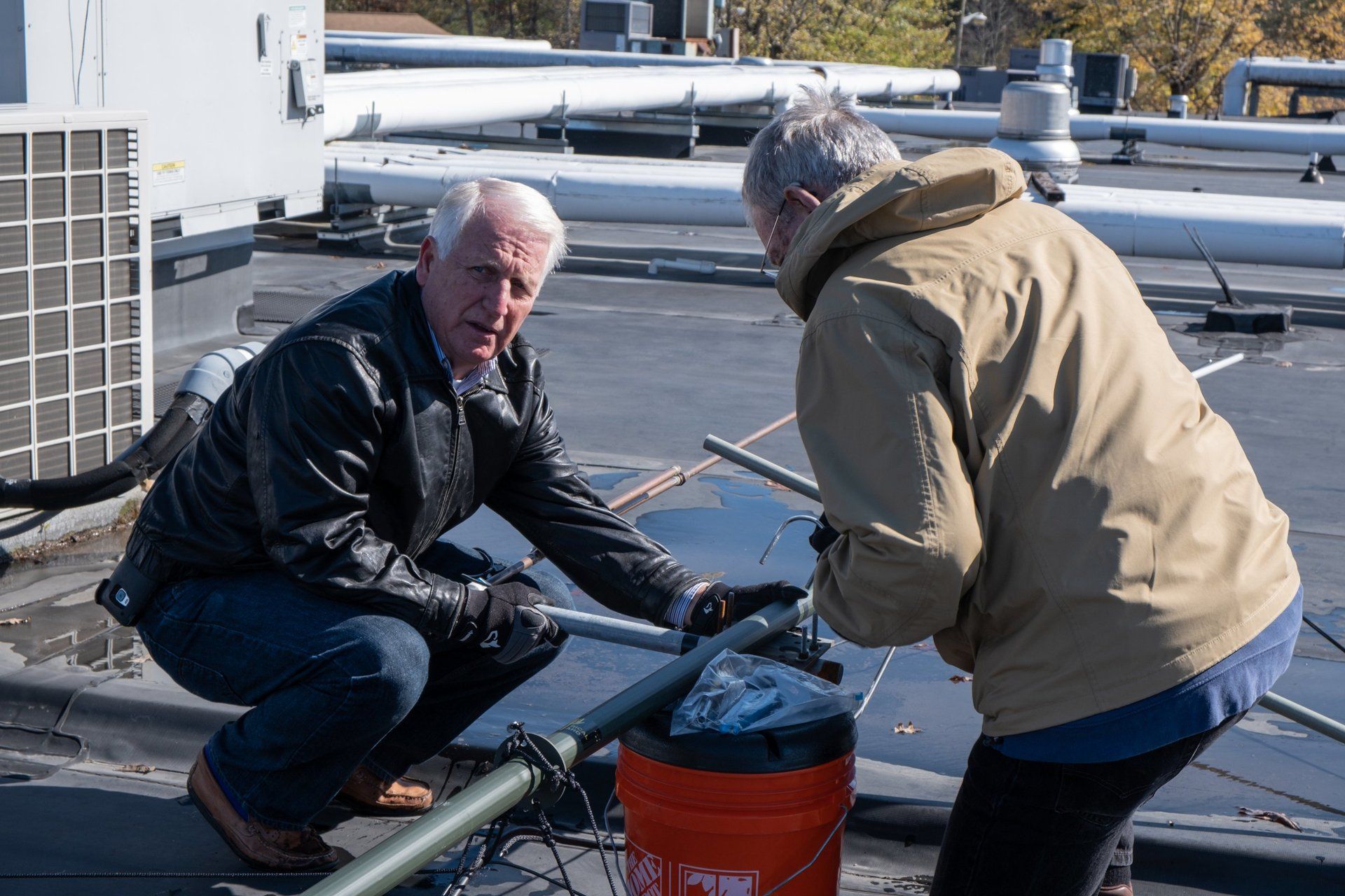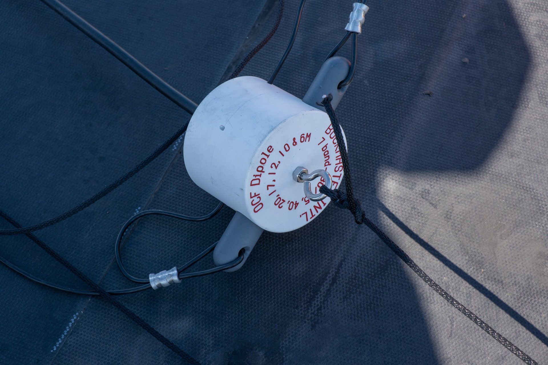 Yes, it was chilly on November 10th, 2018 but the intrepid team of antenna hangers climbed onto the roof of the Hospital and made adjustments to the HF Antenna. After 4-hours it was back in place but still work to do with 80 meters.