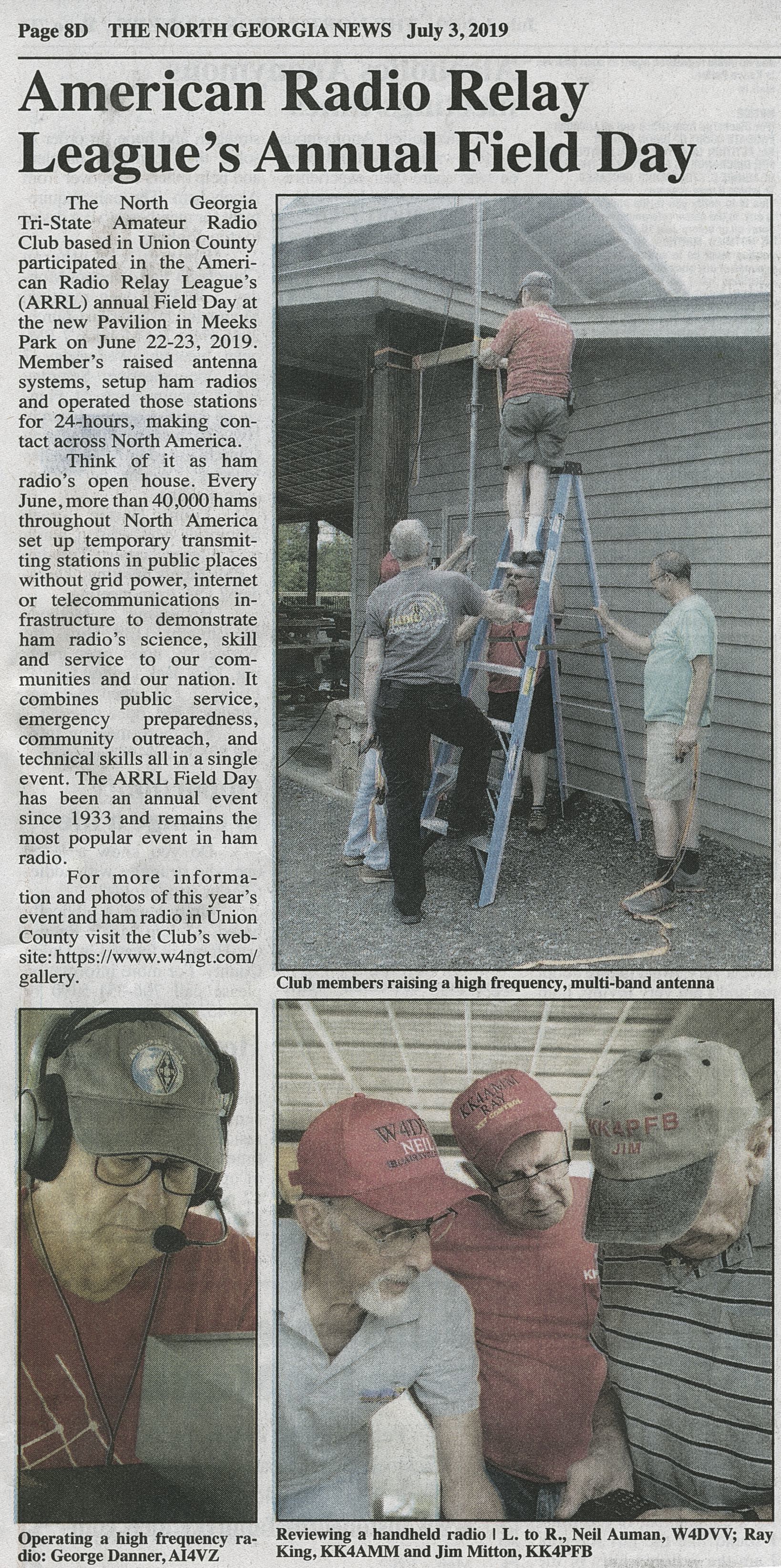 The Members would like to thank the North Georgia News for their coverage of this years Field Day event. Page 2D, June 290th, 2022 | Copyright 2022, North Georgia News - posted with permission.